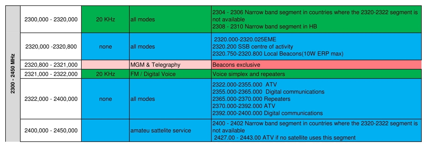 Bandplan 13 cm IARU Region 1 (18.03.2020 r.)