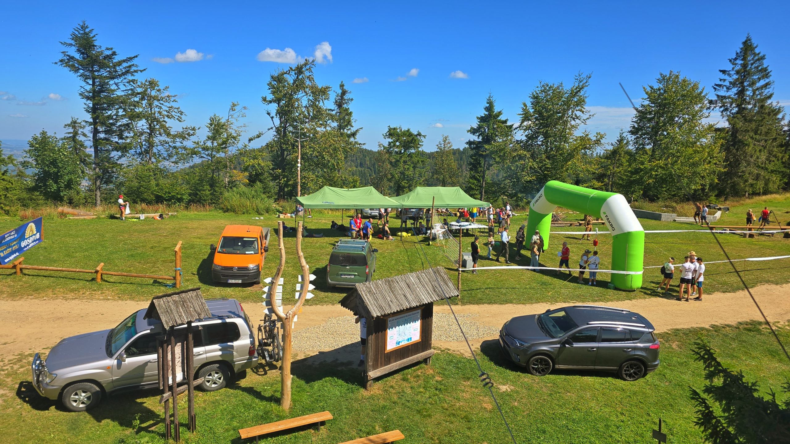 Pogoda dopisała fantastycznie, choć prognozy zapowiadały deszcz i burze, a poranek powitał nas dużymi chmurami nad Beskidem. Wkrótce jednak niebo się rozjaśniło, słońce przebijało się przez mgłę, a lekki wiatr niósł zapach lasu i gór, towarzysząc nam i zawodnikom przez całą trasę.