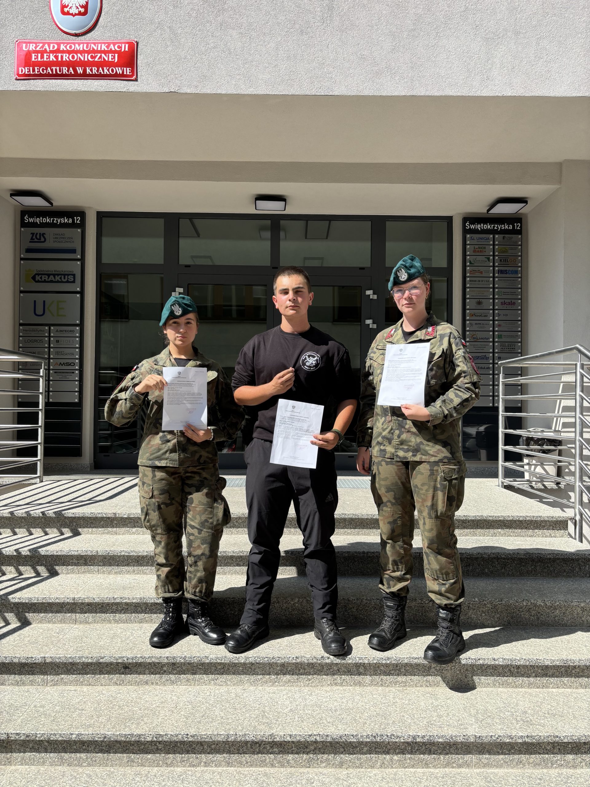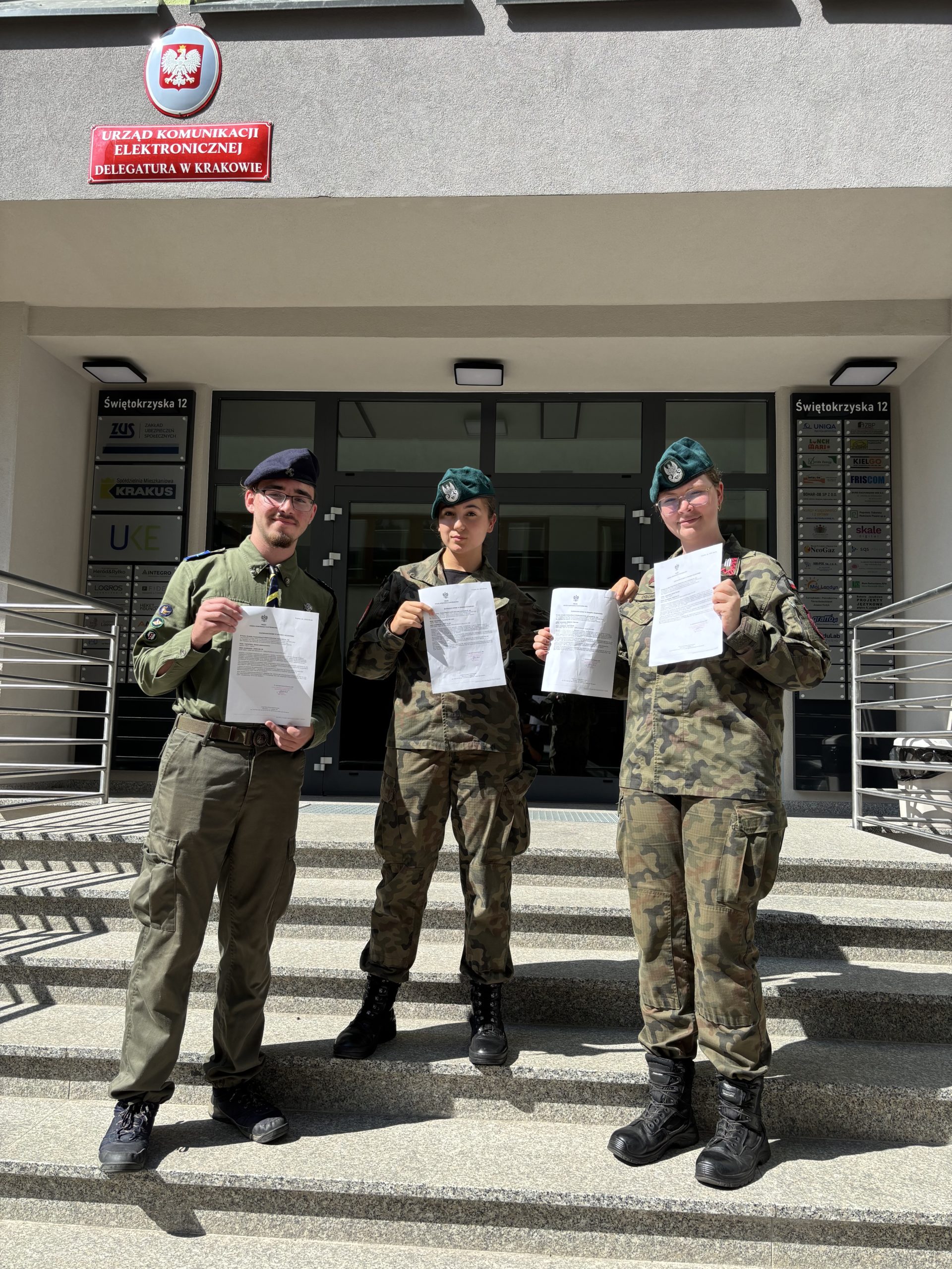 W czwartek, 4 września 2025 roku, młodzież z Jednostki Strzeleckiej 2006 „Strzelec” przy Szkole im. Sybiraków w Nowym Sączu oraz reprezentant ZHP Nowy Sącz przystąpiła do egzaminu na operatora urządzeń radiowych w Amatorskiej Służbie Radiokomunikacyjnej (ASR) w krakowskiej delegaturze Urzędu Komunikacji Elektronicznej. Z radością możemy poinformować, że wszyscy zdali egzamin z wynikiem pozytywnym!